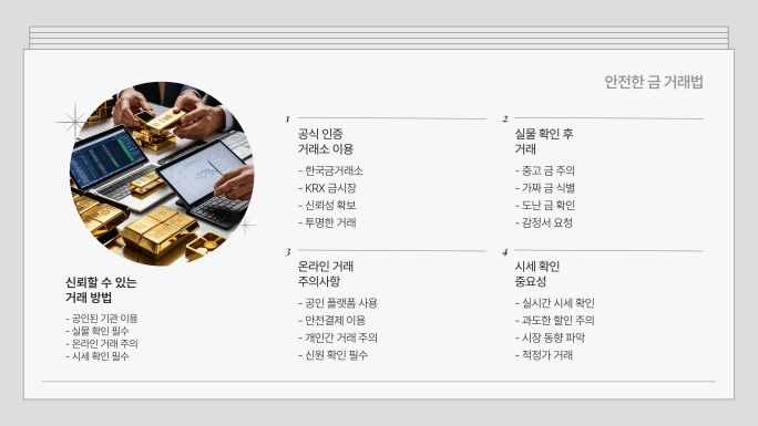 금 거래 시 사기 피해를 방지하고, 안정적으로 거래할 수 있는 방법을 소개합니다.
