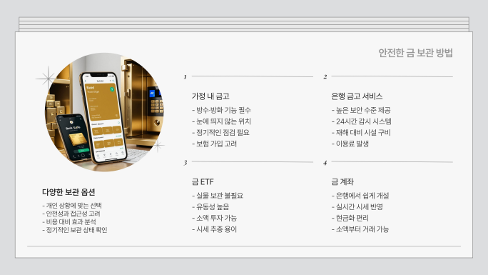 ✔ 은행의 개인 금고나 금 보관 서비스를 활용하면 더욱 안전합니다.