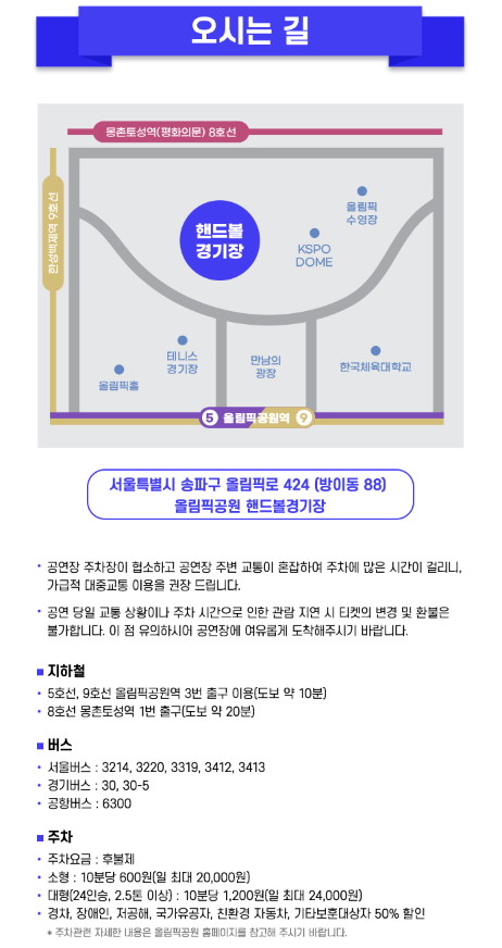 - 장소: 올림픽공원 핸드볼경기장